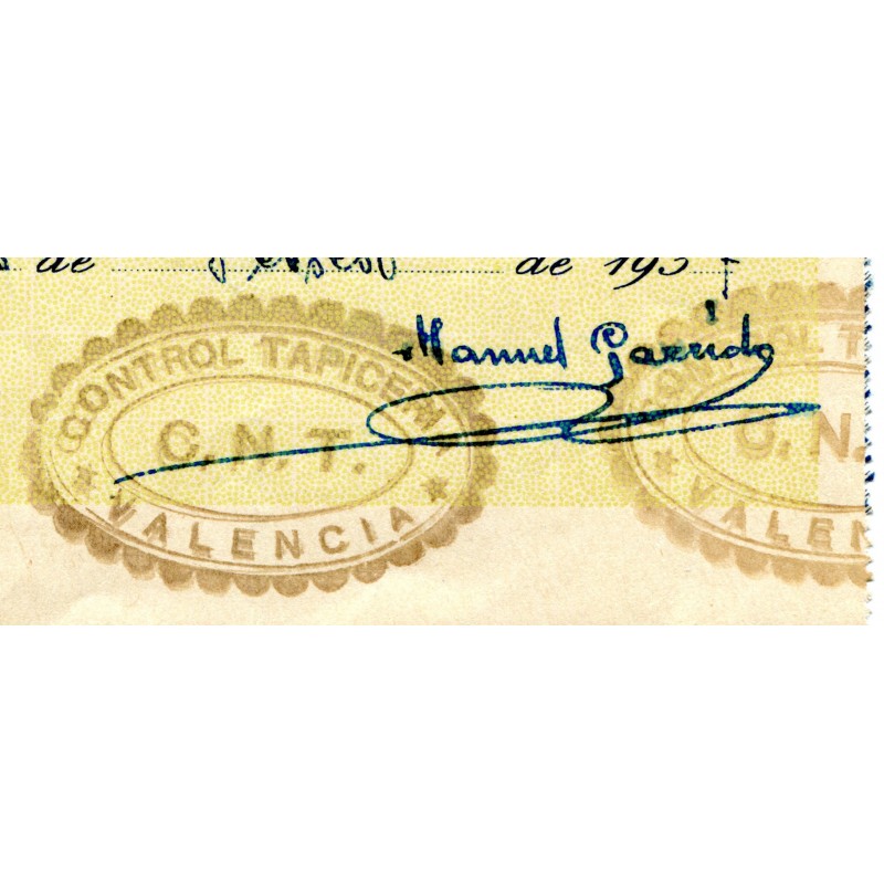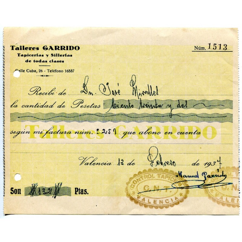 Collectivized companies, Talleres Garrido, Valencia, with mark "Control Tapicería, CNT, Valencia"