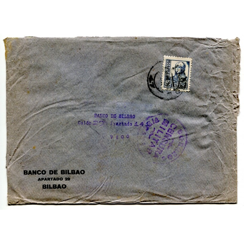 Bilbao censor mark Heller B68.20 on cover to Vigo