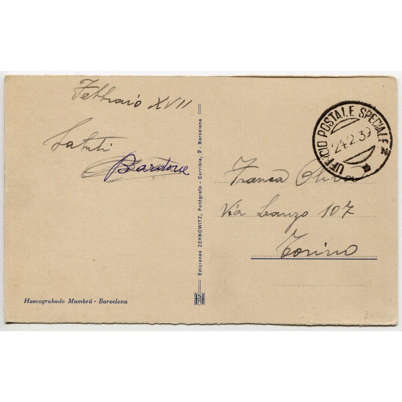 Corpo Truppe Volontarie, post card, Barcelona, Plaza España, 1939