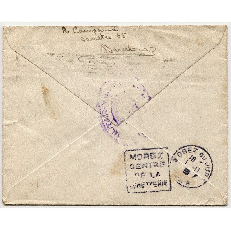 Cover from Barcelona to Morez du Jura, France, with censor, 1938