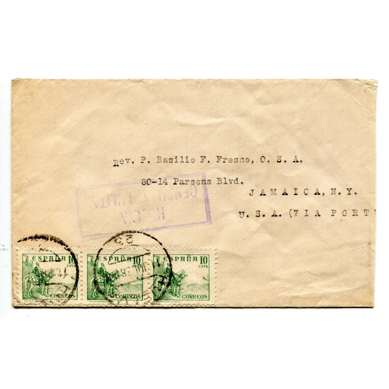 Cover from Huelva to Jamaica, USA, with censor Heller H13.11