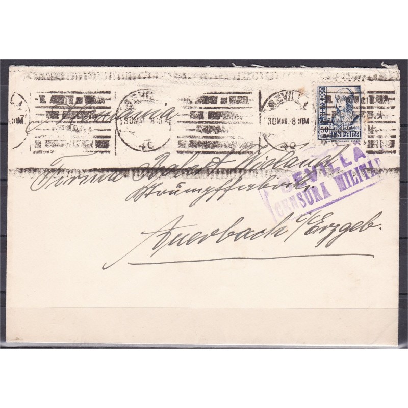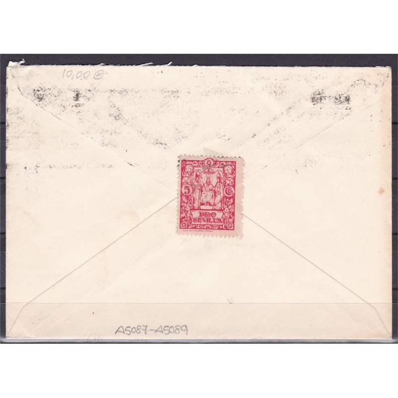 Cover from Sevilla to Germany with local stamp on the back, 1938