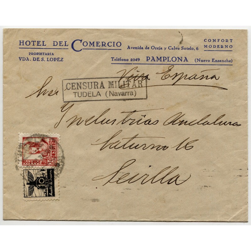 Cover from Tudela to Sevilla with censor mark, 1937