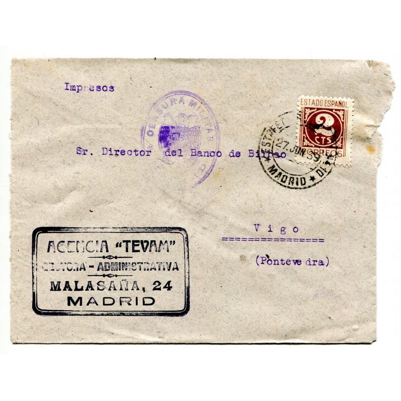 Madrid censor mark Heller M2.16 on cover to Vigo