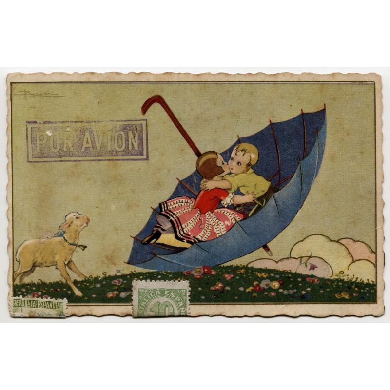 Air mail post card from Barcelona to Saint-Cloud, France, 1939