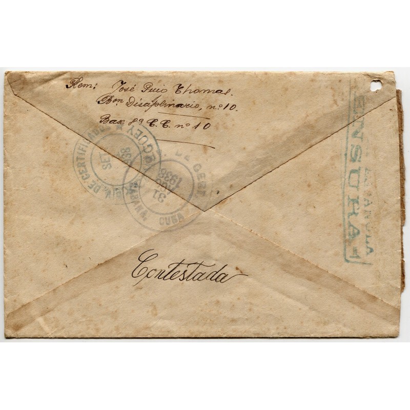 1938. Cover from 10th Disciplinary Battalion to Camagüey, Cuba.
