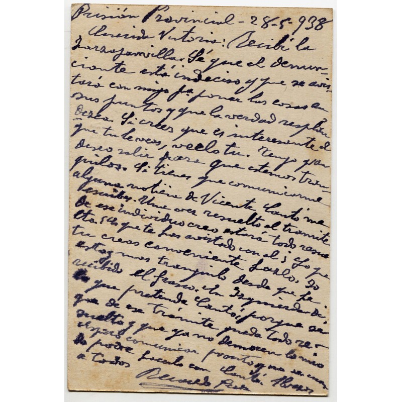 Postal stationery from Alicante Prisión Provincial to the same city, 1938