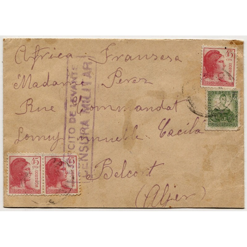 Cover from the front to French Algeria with censor "EJÉRCITO DE LEVANTE / CENSURA MILITAR"