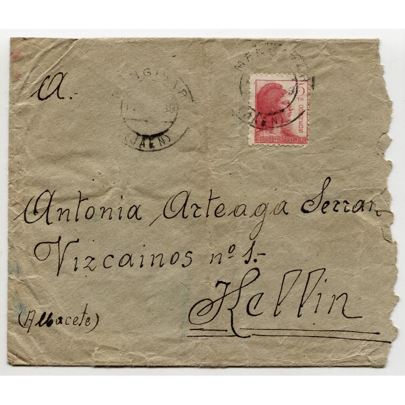 Cover with mark Sanidad Militar from Mengíbar to Hellín, 1938