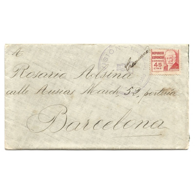 Field post cover to Barcelona with 26 Division Compañía de Transmisiones mark, 1938