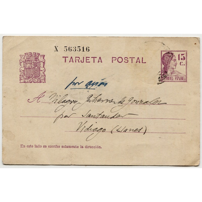 Stationery postcard from Madrid to Vidiago, 1937
