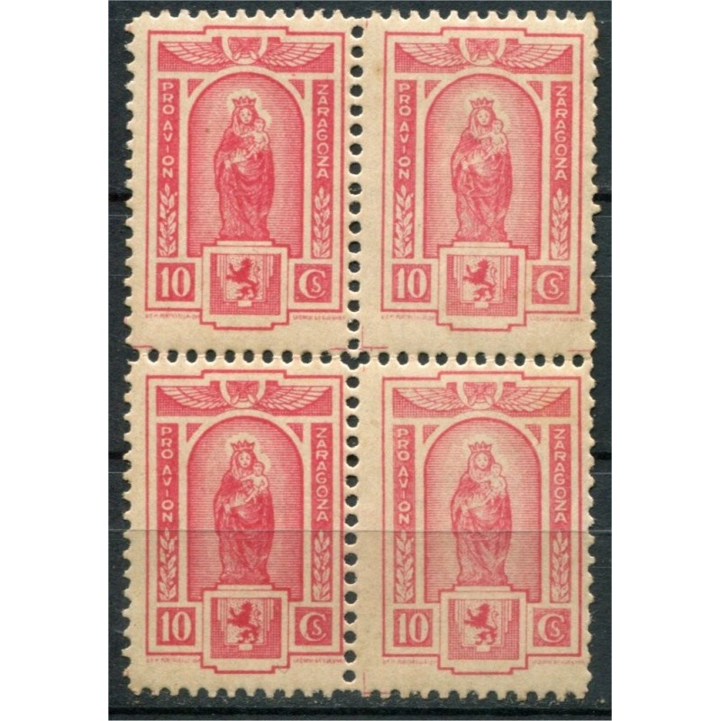 Zaragoza, Pro Avión, 2nd series, block of 4, 10c red, Allepuz 5, MNH