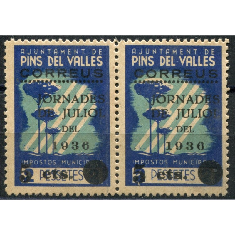 Pins del Vallès, pair, 5c on 2p blue and pale blue, Allepuz 13, MH