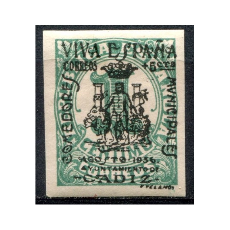 Cádiz, 1936, patriotic overprint on 1c, Edifil 1, MH