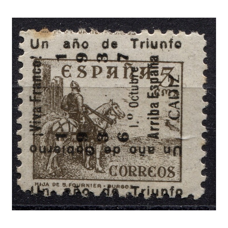 Cádiz, 5c Edifil 21 with displaced overprint and stamp with wider margins, MH, stain