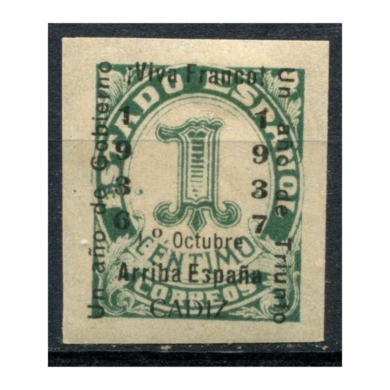 Cádiz, patriotic overprint [B], 1937, on 1c, Edifil 17, MH