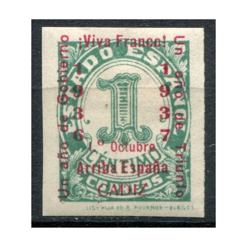 Cádiz, patriotic overprint [R], 1937, on 1c, Edifil 18, MH
