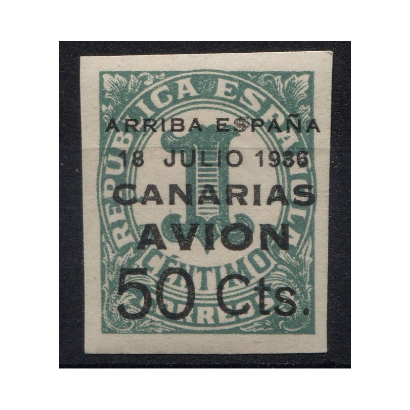 Canarias, air mail surcharge, 50c on 1c Edifil 20, MNH