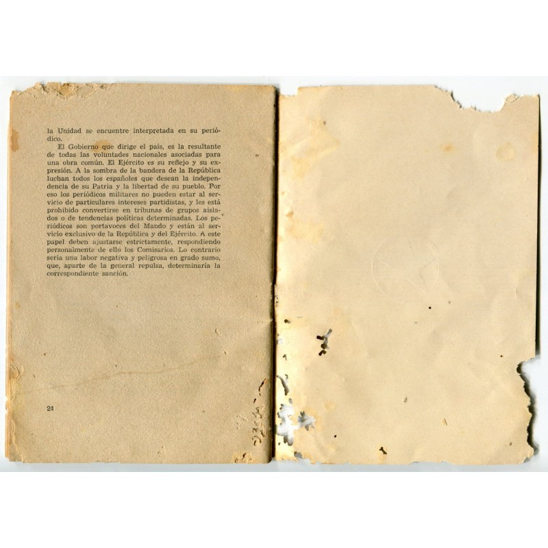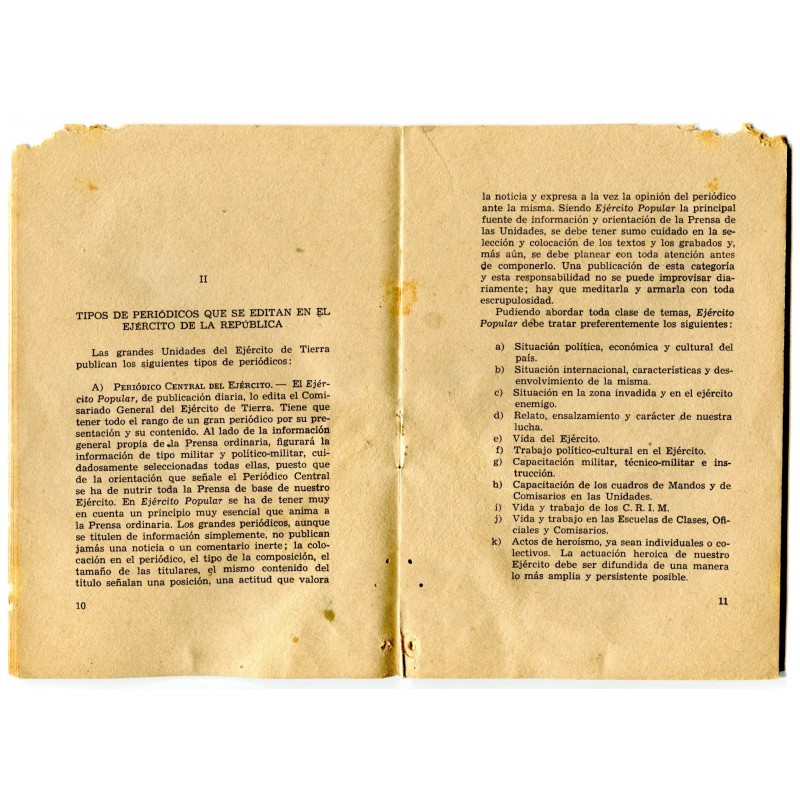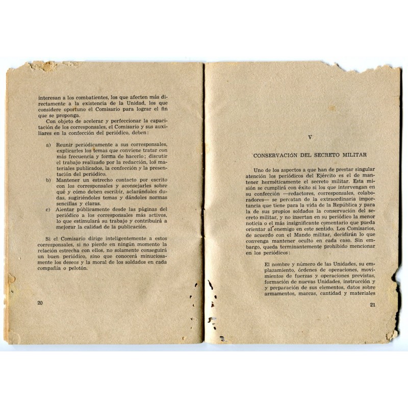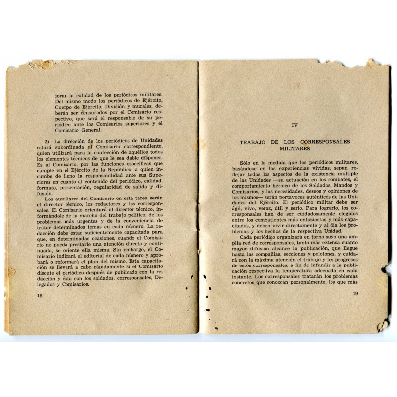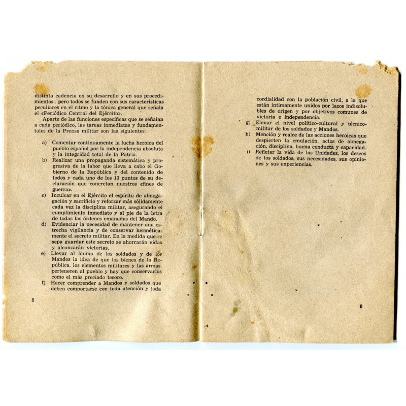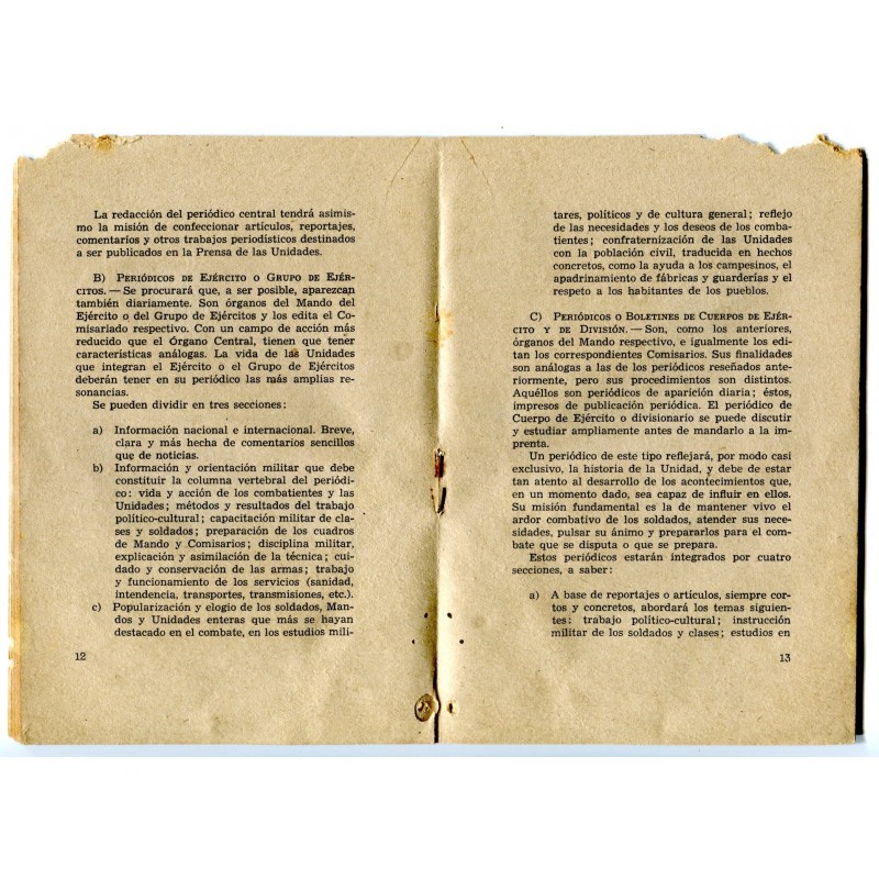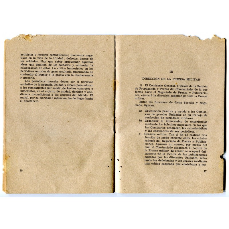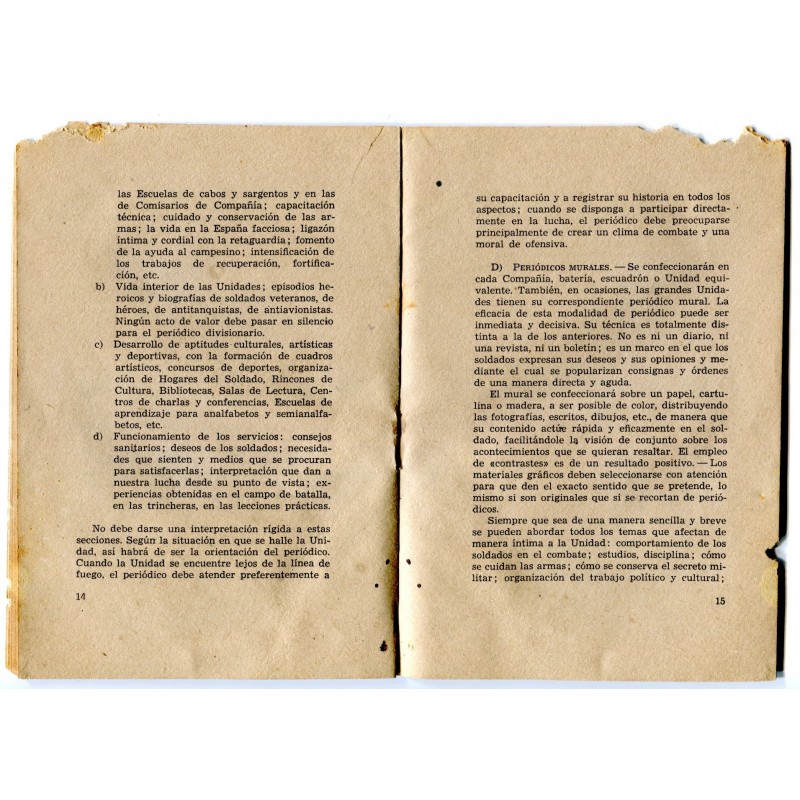 Republican Army booklet: Prensa Militar y Periodicos Murales, august 1938
