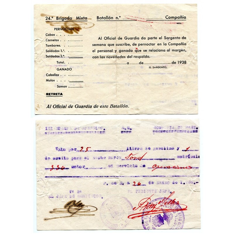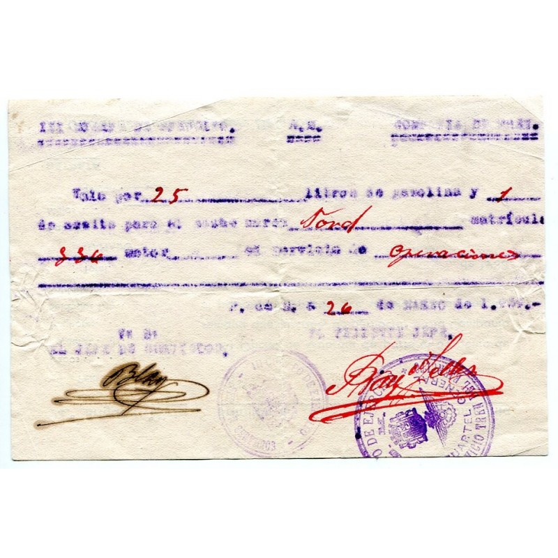 Republican Army, ticket with mark 3r Cuerpo de Ejército, E.M. Cuartel General, Servicio Tren del Ejército, 1938