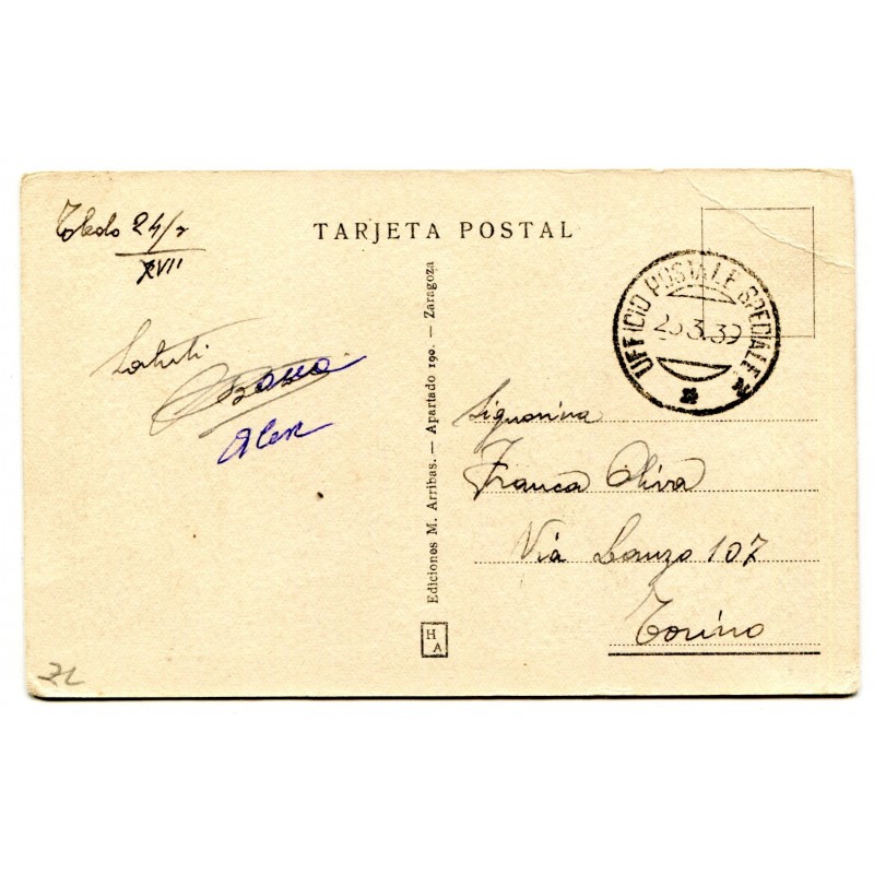 Corpo Truppe Volontarie, post card to Torino, 1939