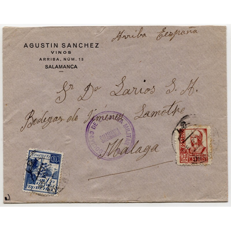 Cover from Salamanca to Málaga with censor mark, 1937