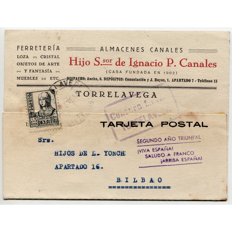 Torrelavega censor Heller T45.4 and postmark dated on January 1938.