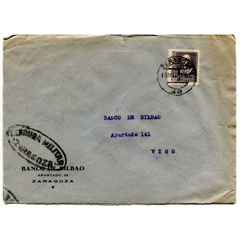 Zaragoza censor mark Heller Z8.6a on cover to Vigo
