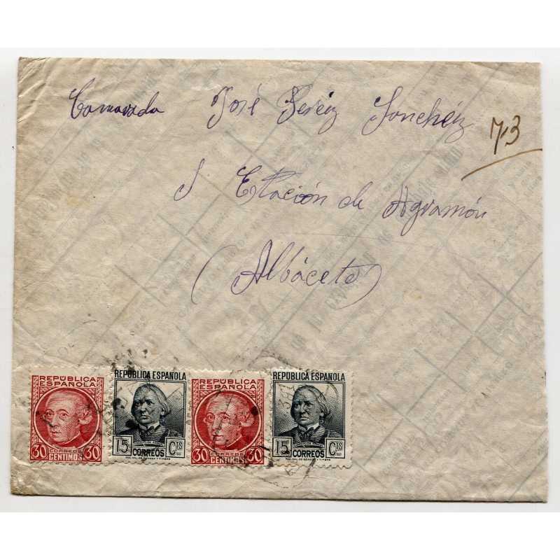 Cover from the front to Estación de Agramón, Albacete, 1938