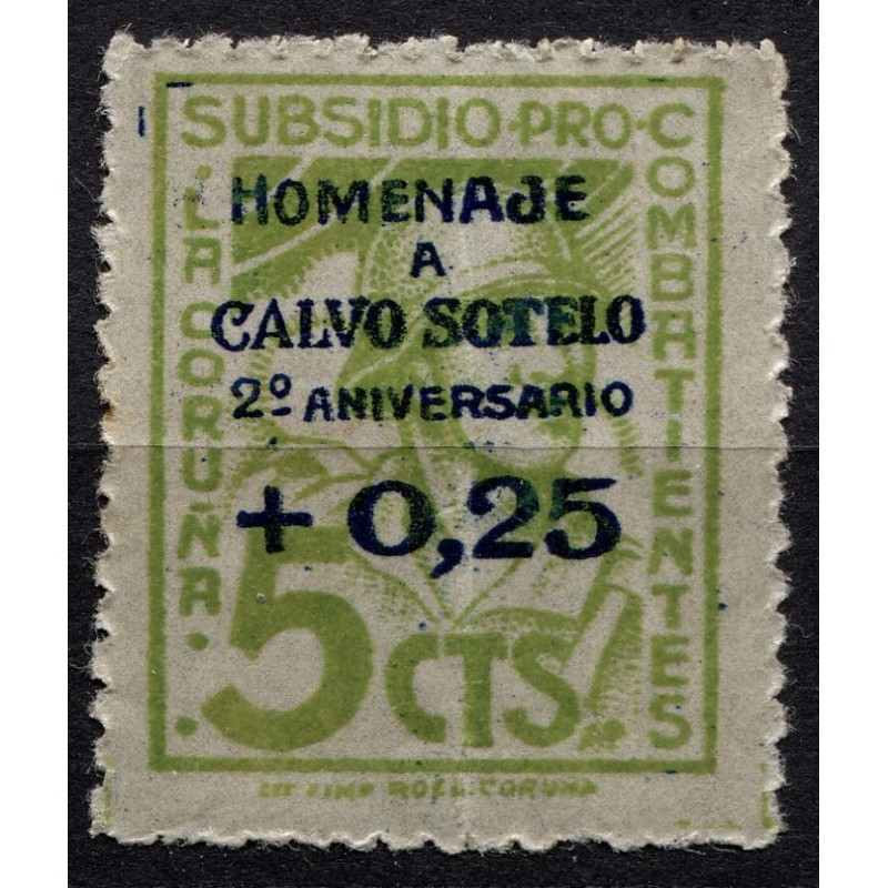 La Coruña, overprint Homenaje a Calvo Sotelo 25c, Allepuz 32, MNH