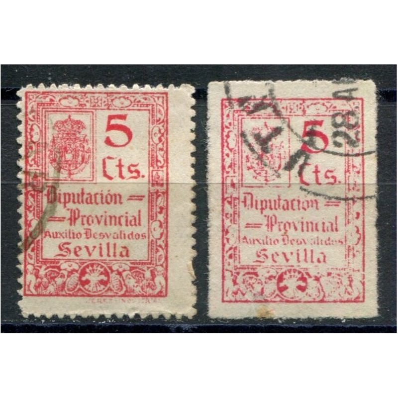 Sevilla, Diputación Provincial Auxilio Desvalidos, 5c & 5c red, perforation varieties, Allepuz 49, used