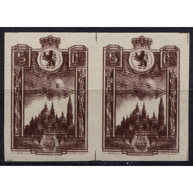 Zaragoza, pair 5c brown with double printing, Allepuz 20ed, MNH