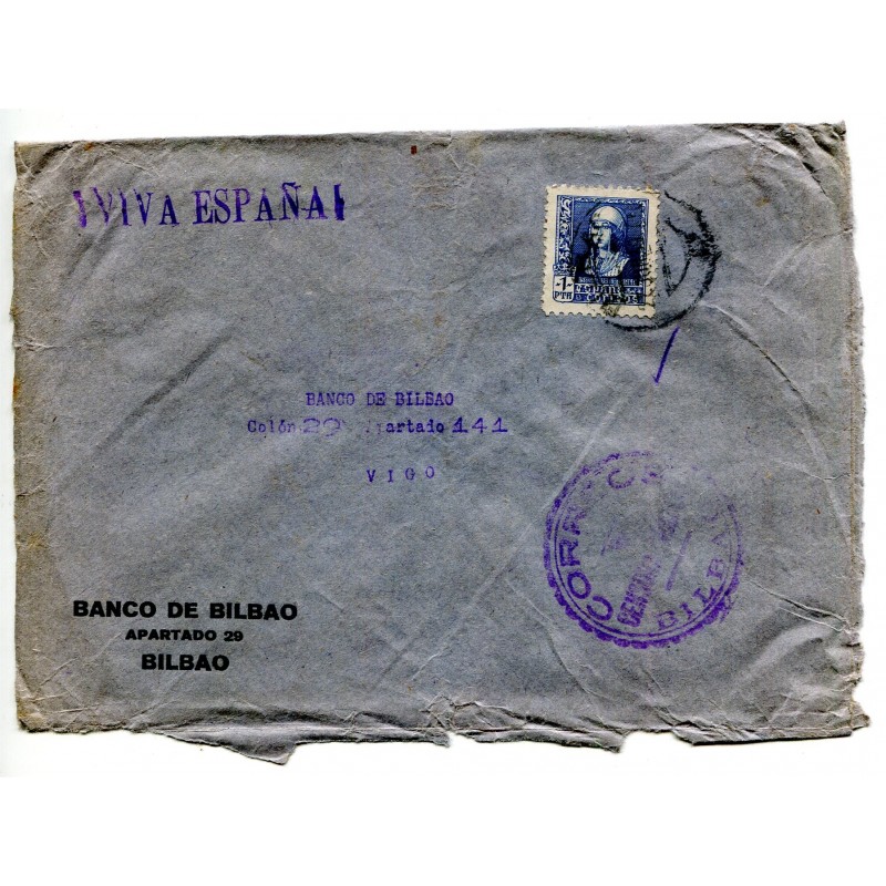 Censura de Bilbao Heller B68.23a en sobre a Vigo