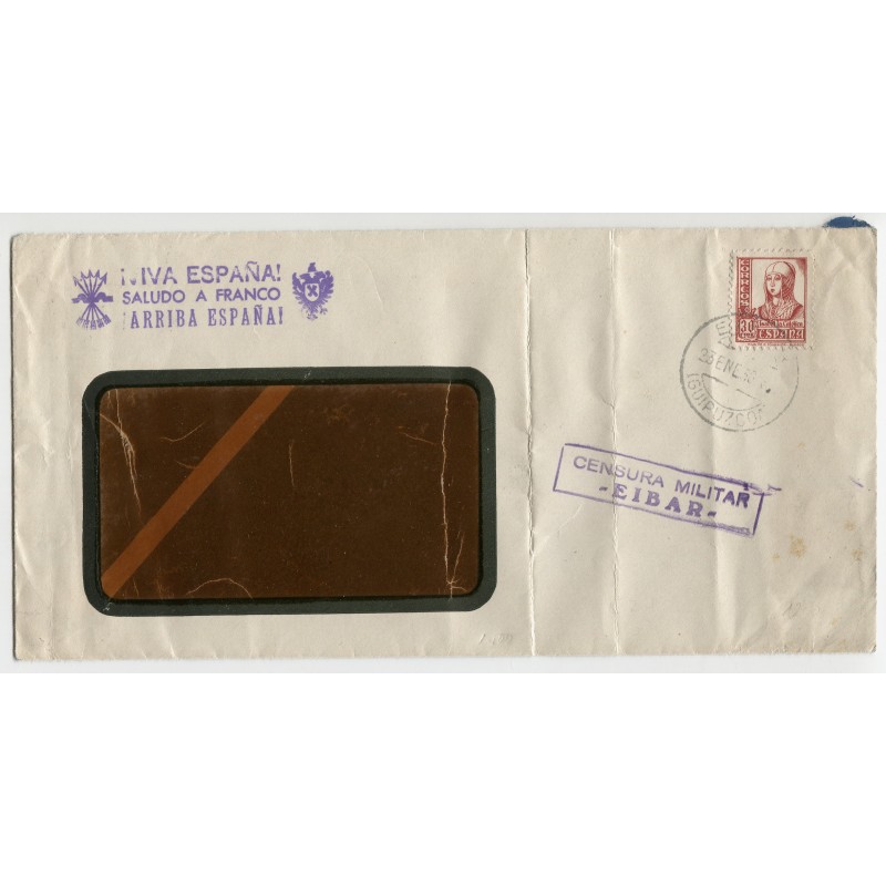 Sobre con censura de Éibar y marca del Requeté, 1938
