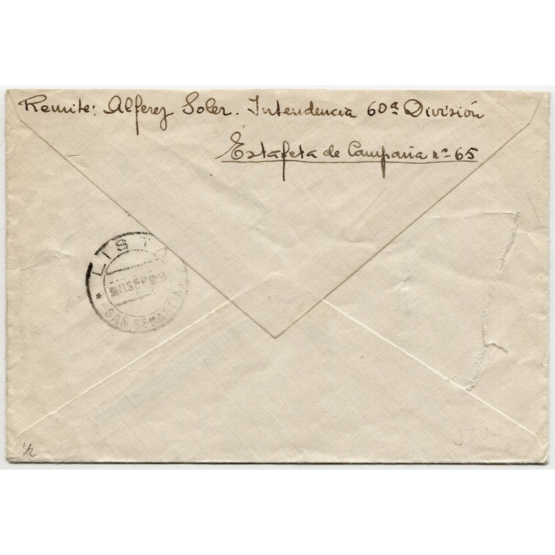 Sobre con franquicia de la Comandancia Militar de Ëcija a San Sebastián, 1938