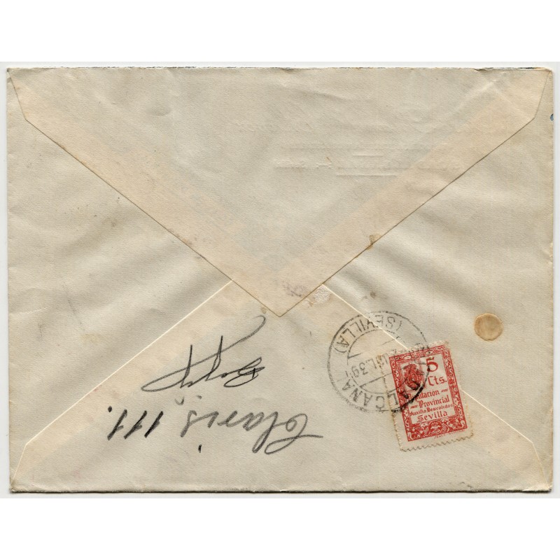 Matasellos de Guadalcanal (Sevilla) de 2 de julio de 1939 y marca de censura Heller G36.1. Local de Sevilla al dorso.