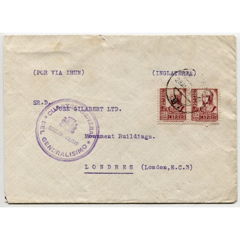 Sobre de Málaga a Londres, Ingleterra, con censura Generalísimo, 1937