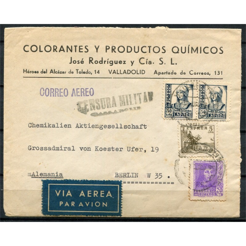 Sobre del correo aéreo de Valladolid a Alemania con censura, 1938