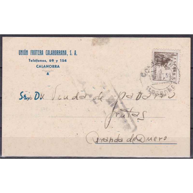 Tarjeta postal de Calahorra a Aranda de Duero con marca de censura, 1938