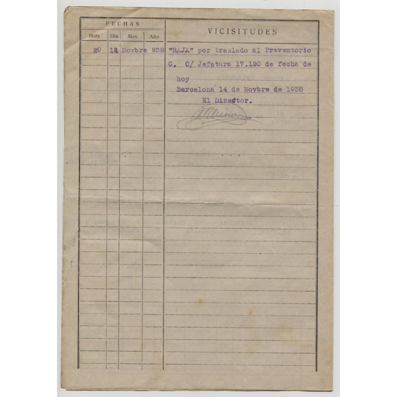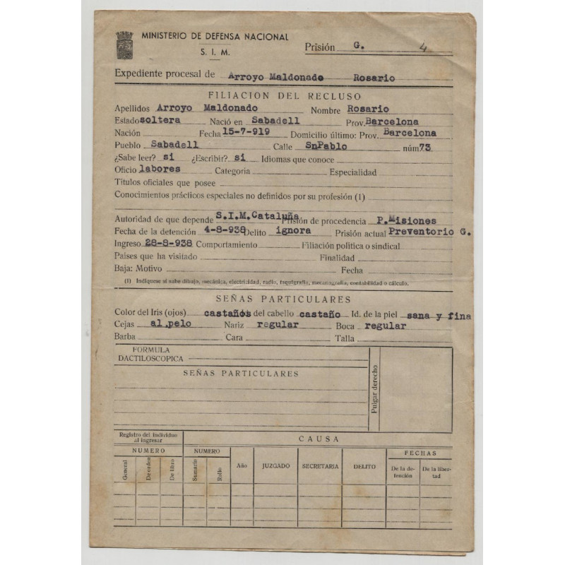 Inusual ficha de detenido del Preventorio G del Servicio de Informació Militar (SIM).