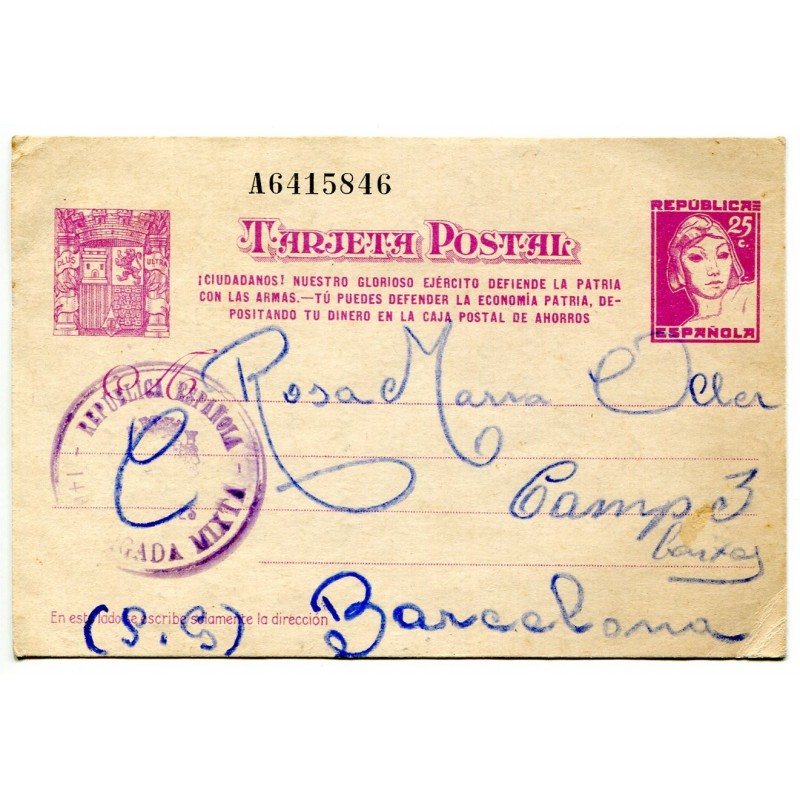Entero postal Edifil 80 con marca de la 140 Brigada Mixta usada como censura