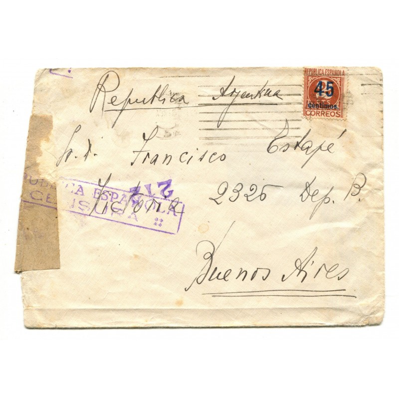 Sobre a Argentina con marca de censura, 1938