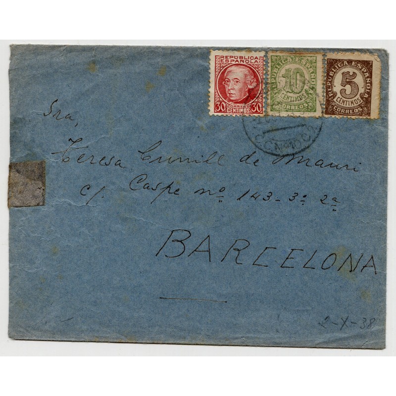 Matasellos del correo de campaña CC Nº 10 C2 de 2 de octubre de 1938. Enviado desde la 34 División.
