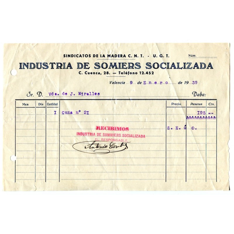 Empresas colectivizadas, CNT UGT, Industria de Somiers Socializada, Valencia, con marca