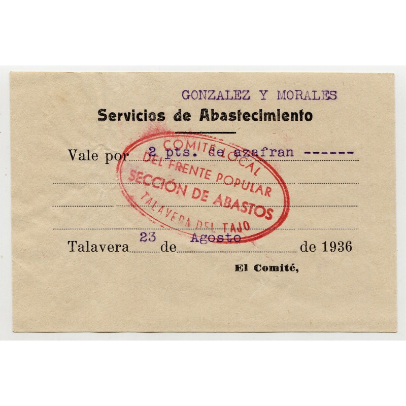 Marca "COMITÉ LOCAL / DEL FRENTE POPULAR / SECCIÓN DE ABASTOS / TALAVERA DEL TAJO"