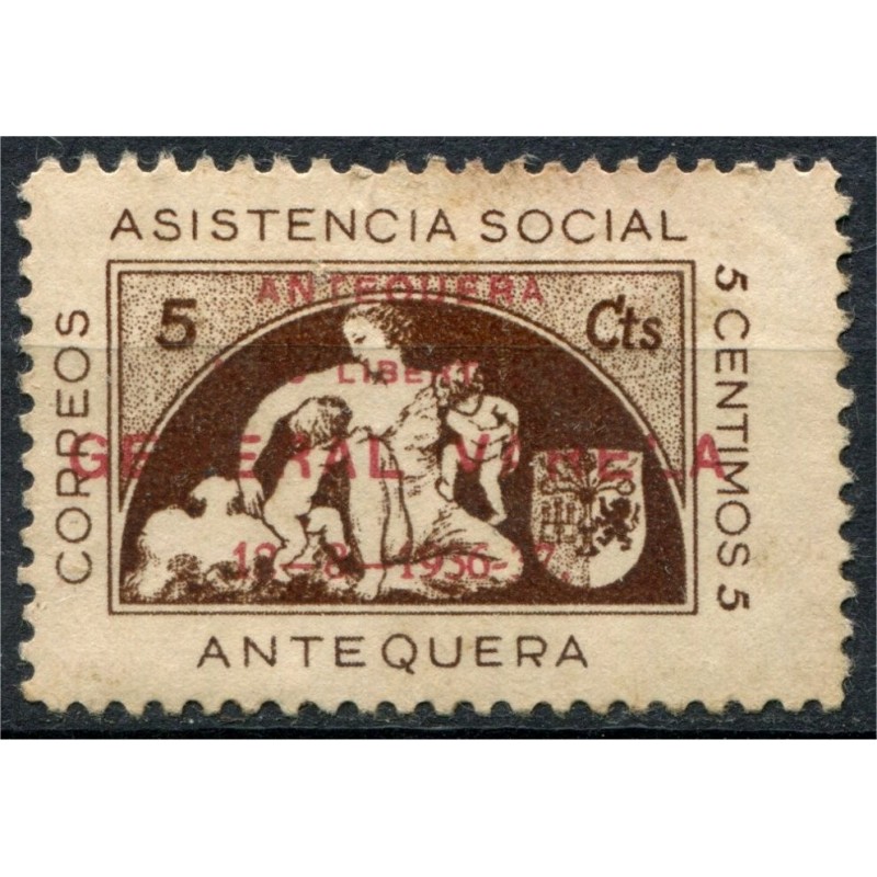 Antequera, sobrecarga roja General Varela sobre 5c castaño, raro, Allepuz 13, NSG