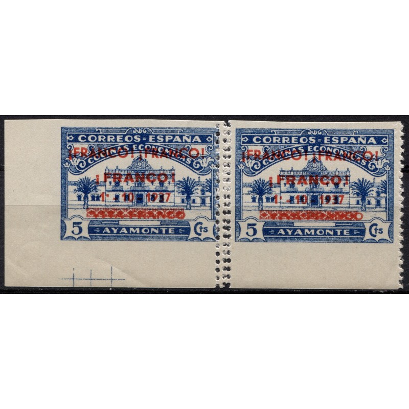 Ayamonte, variedad de perforación no catalogada: triple dentado vertical y sin dentado horizontal, margen izquierdo del sello de la izquierda también sin dentar **