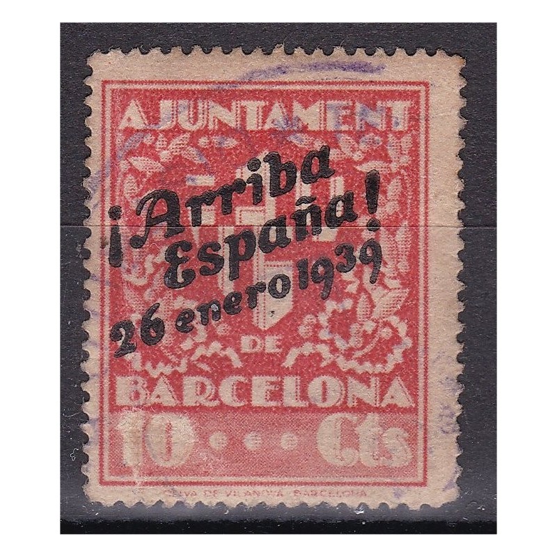 Barcelona, fiscal, sobrecargado con "Arriba España 26 enero 1939", 10c, no catalogado, usado