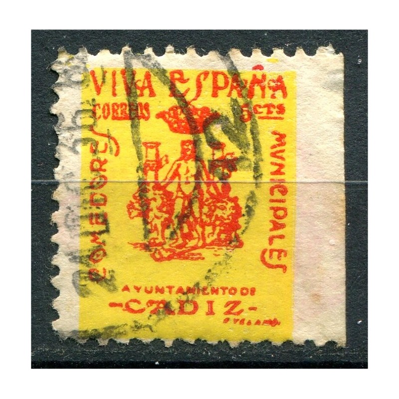 Cádiz, 5c rojo y amarillo con lateral derecho sin dentar, Allepuz 3var, usado
