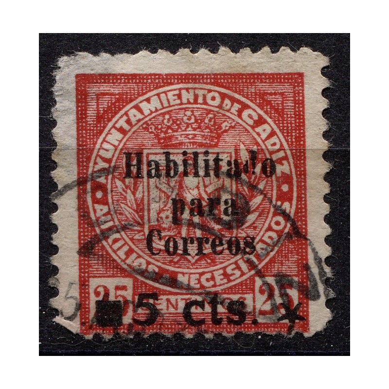 Cádiz, 5c sobre 25c, sobrecarga negra, Allepuz 72, usado